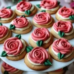 - Once cooled, pipe the buttercream roses onto each cookie, starting at the center and swirling outward.