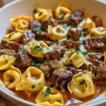 Cheesesteak Tortellini in Rich Provolone Sauce is a delightful fusion dish that marries the comfort of Italian and American flavors into one irresistible bowl. Imagine succulent ribeye steak, tender cheese tortellini, and a creamy provolone sauce enveloping each bite. This dish isn’t just food; it’s a warm hug on a plate, perfect for busy weeknights or cozy family dinners. With its easily approachable ingredients and straightforward preparation, it’s a swift and comforting meal that will have everyone coming back for seconds.