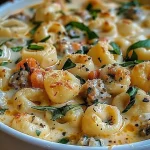 The Creamy Tortellini Alfredo Casserole shines in various settings—perfect for family dinners, potlucks, or as a cozy meal on a rainy day. Pair it with a crisp green salad to balance the richness. A glass of sparkling water with a slice of lemon complements the meal beautifully, enhancing the flavors and providing a refreshing contrast.